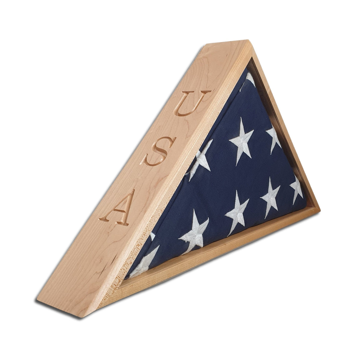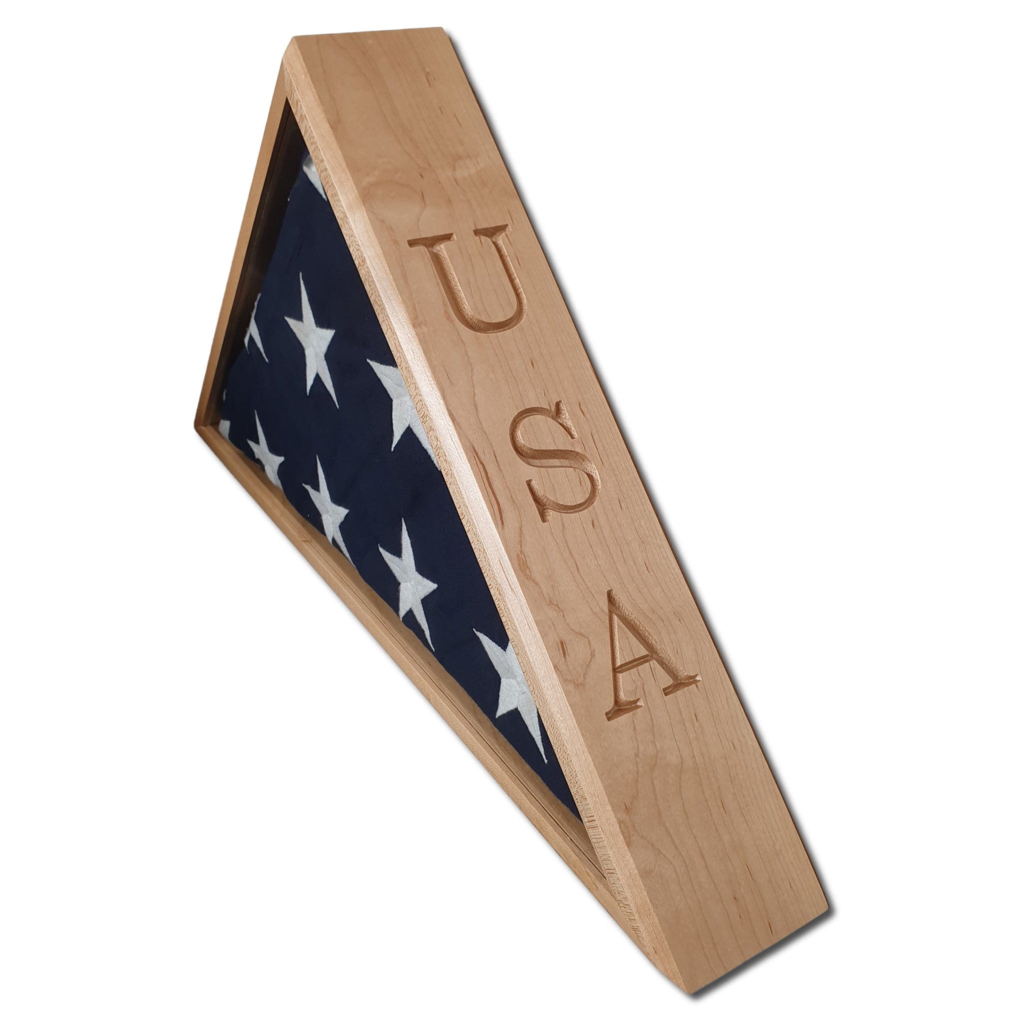 When a US Military Veteran passes, an American Flag is draped over their casket. This flag, known as a Burial or Interment Flag, is then folded and presented to the next of kin, a reminder of the Veteran’s dedication and service to their country. Such an important piece should be displayed in a flag case that is not only handcrafted here in America, but built by US Military Veterans who understand the importance of that flag.